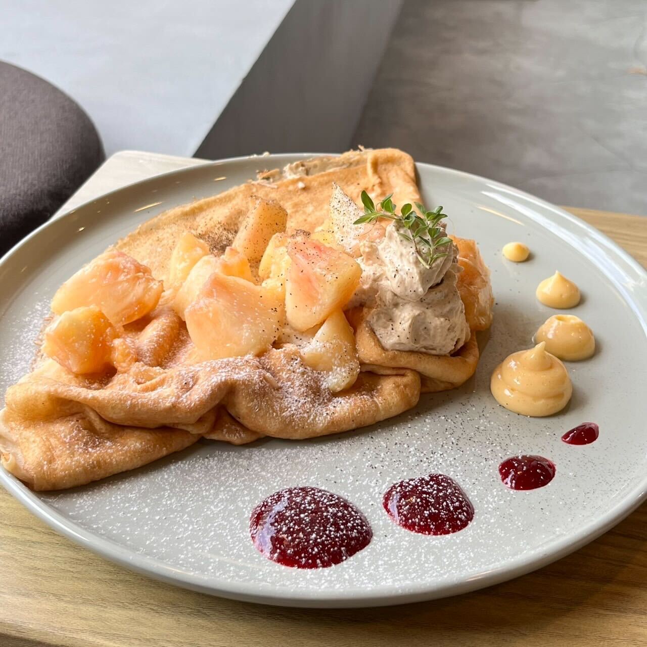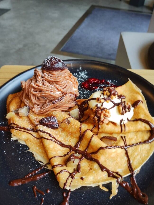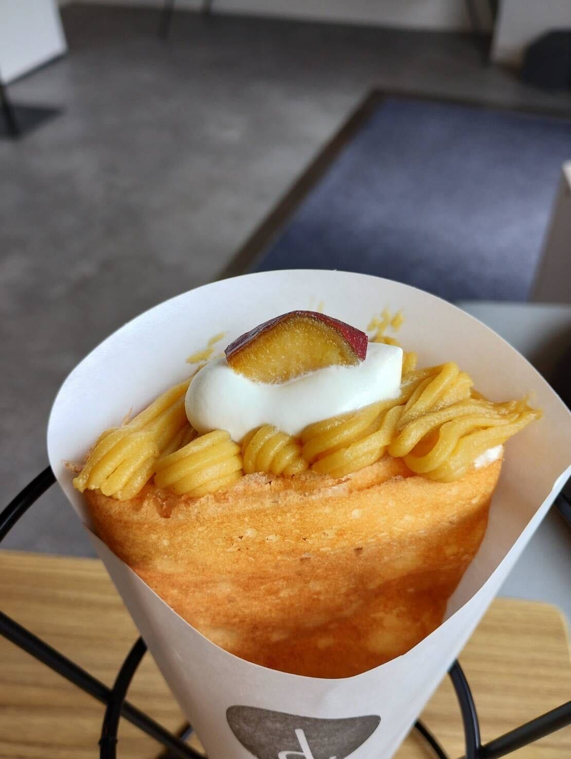 3種類のフランス産マロンペーストを独自配合でブレンドしたマロンクリームをたっぷり使った、栗のクレープが始まりま…